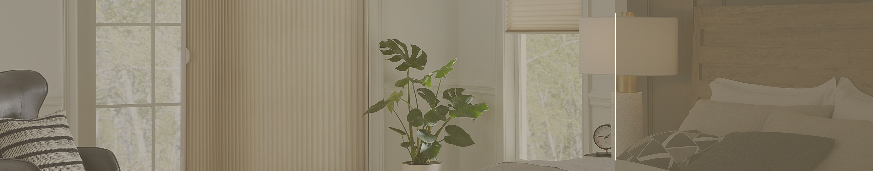 Boutique Serenity Light Filtering Dual Sheer Shades alternate transparent sheer material with light-filtering fabric bands. Align the bands for privacy. Shift them to let filtered light through. Raise the entire shade for an unobstructed view.